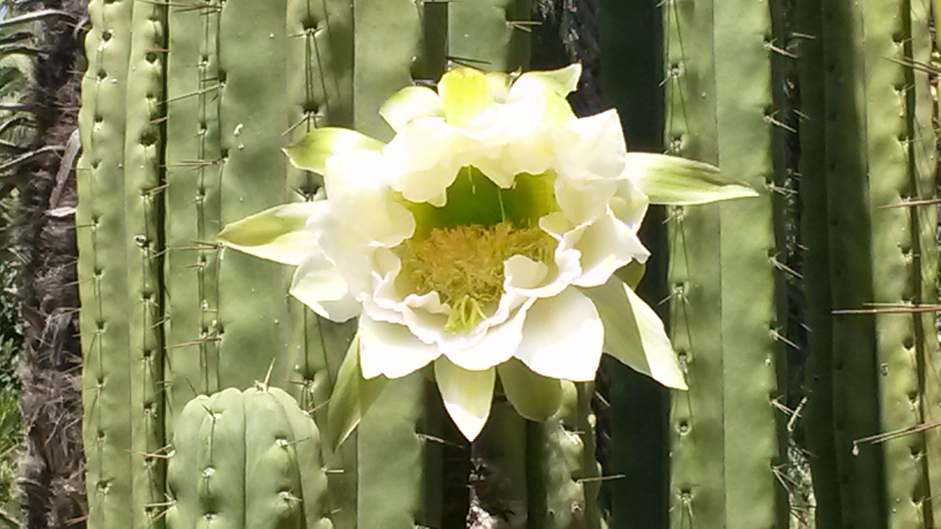 A green notice in the garden tells us that E. grussonii grows fast and does not flower until it reaches maturity. It’s appearance and its easy reproduction make it one of the most cultivated cacti in the world. But in its natural habitat – Querétaro, in the centre of Mexico – it is restricted and almost extinct due to uncontrolled ploughing and the development of a reservoir.