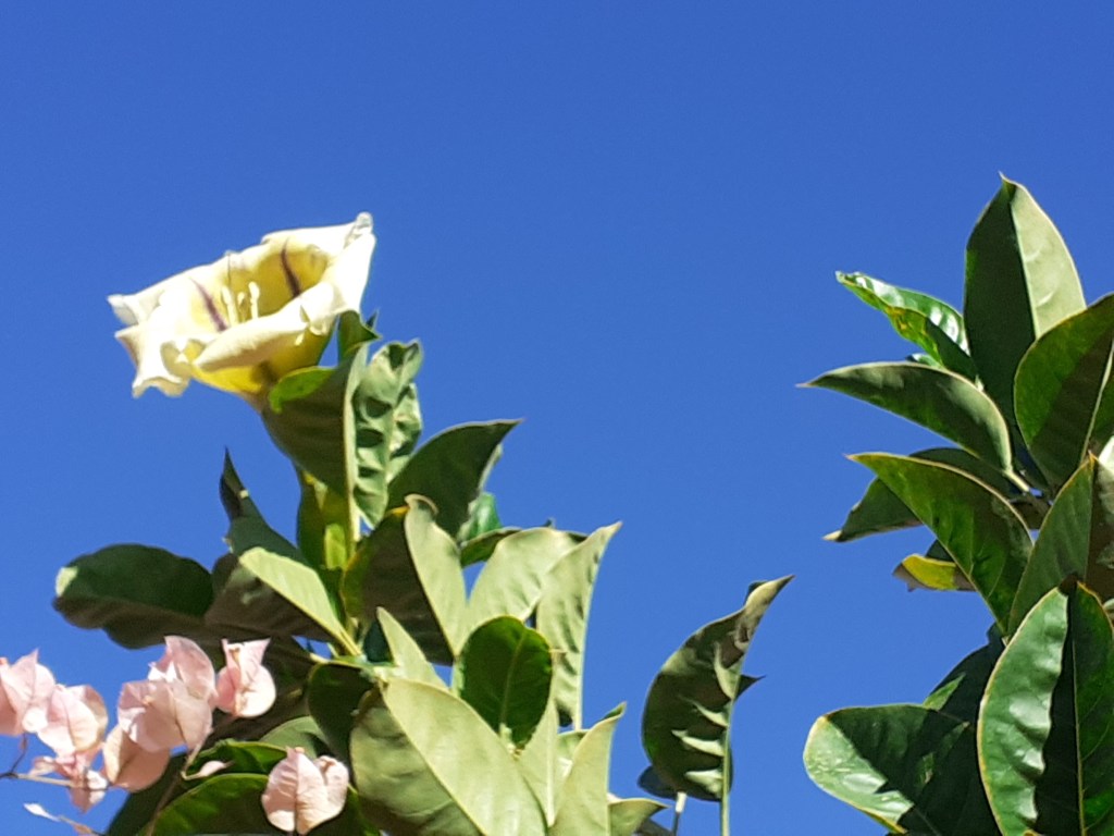 Solandra maxima: a climber with massive flowersSolandra with bougainvillea flowers
