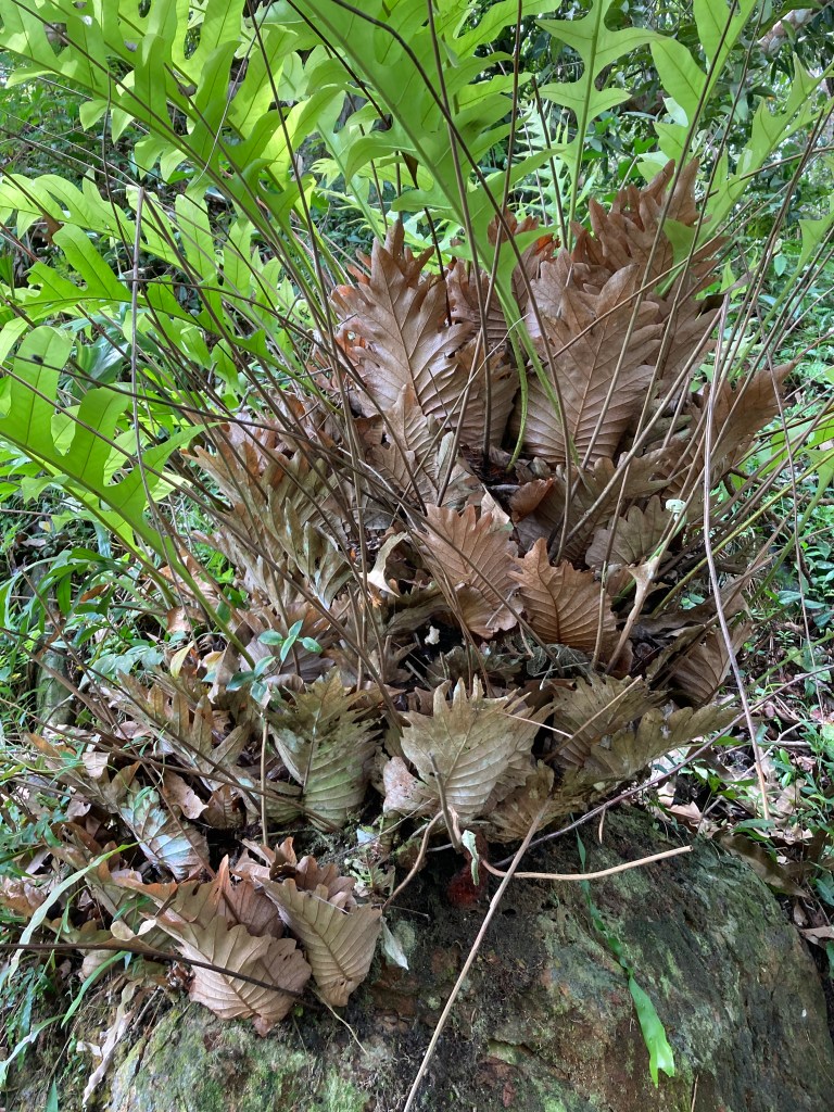 Dotted around Lunuganga are several huge basket ferns (Drynaria sp.) which are highly architectural plants. This one sits magnificently on a rock in woodland, while others may clasp the trunks of trees.