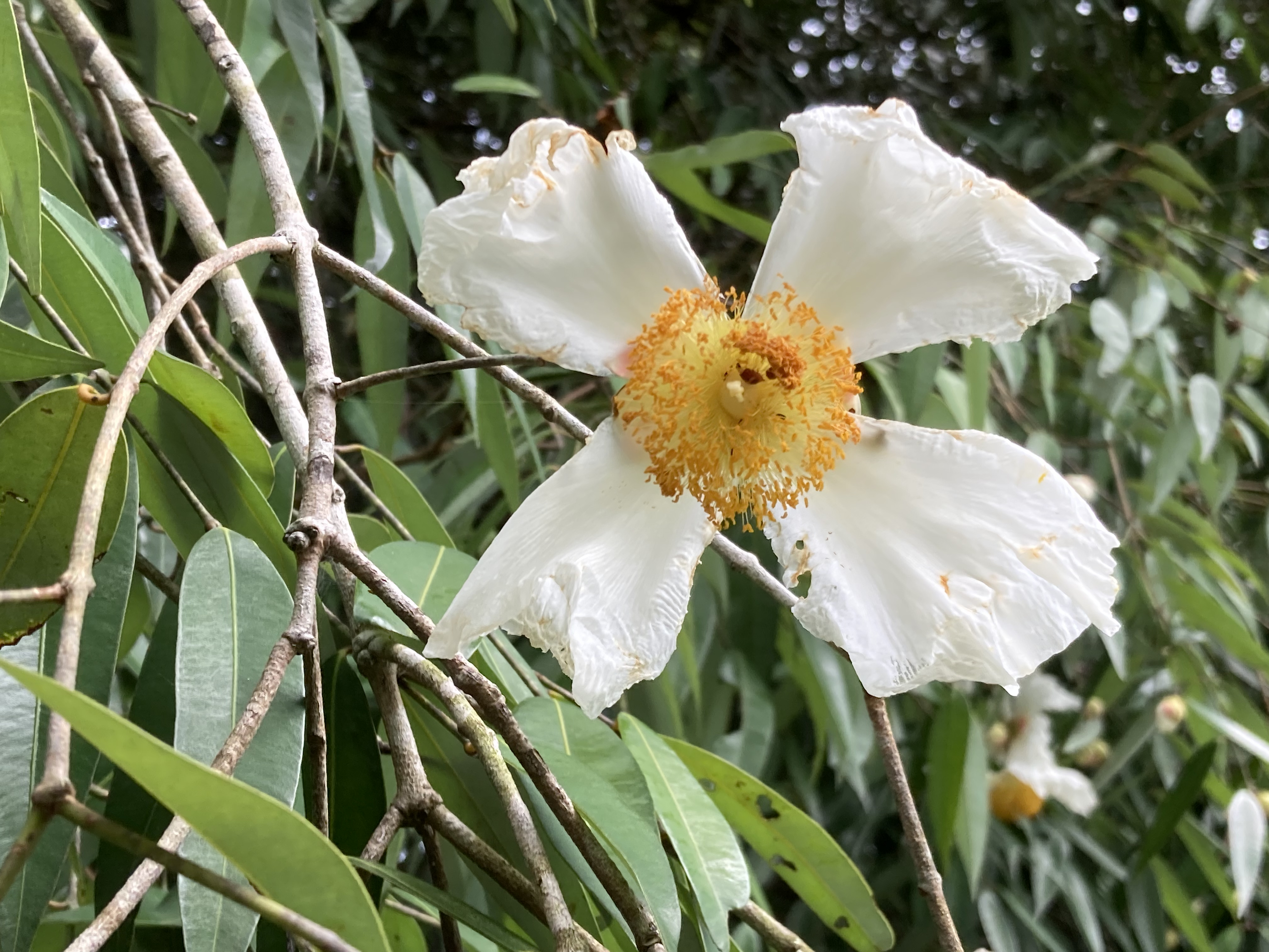 Also in the woodland surrounding the house is the large yellow-flowered shrub Dillenia suffruticosa. It has various medicinal uses and the leaf can be used for holding food. But the plant is also regarded as an invasive weed.