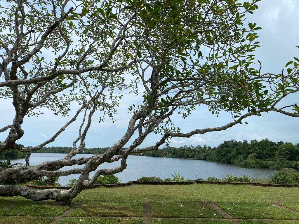 Walking along the Broad Walk, the views are to your right, across the paddy fields and out to the lagoon, known as Dedduwa Lake. Old frangipani trees line the way, and the shoreline is decorated with a balustrade and classical vases.